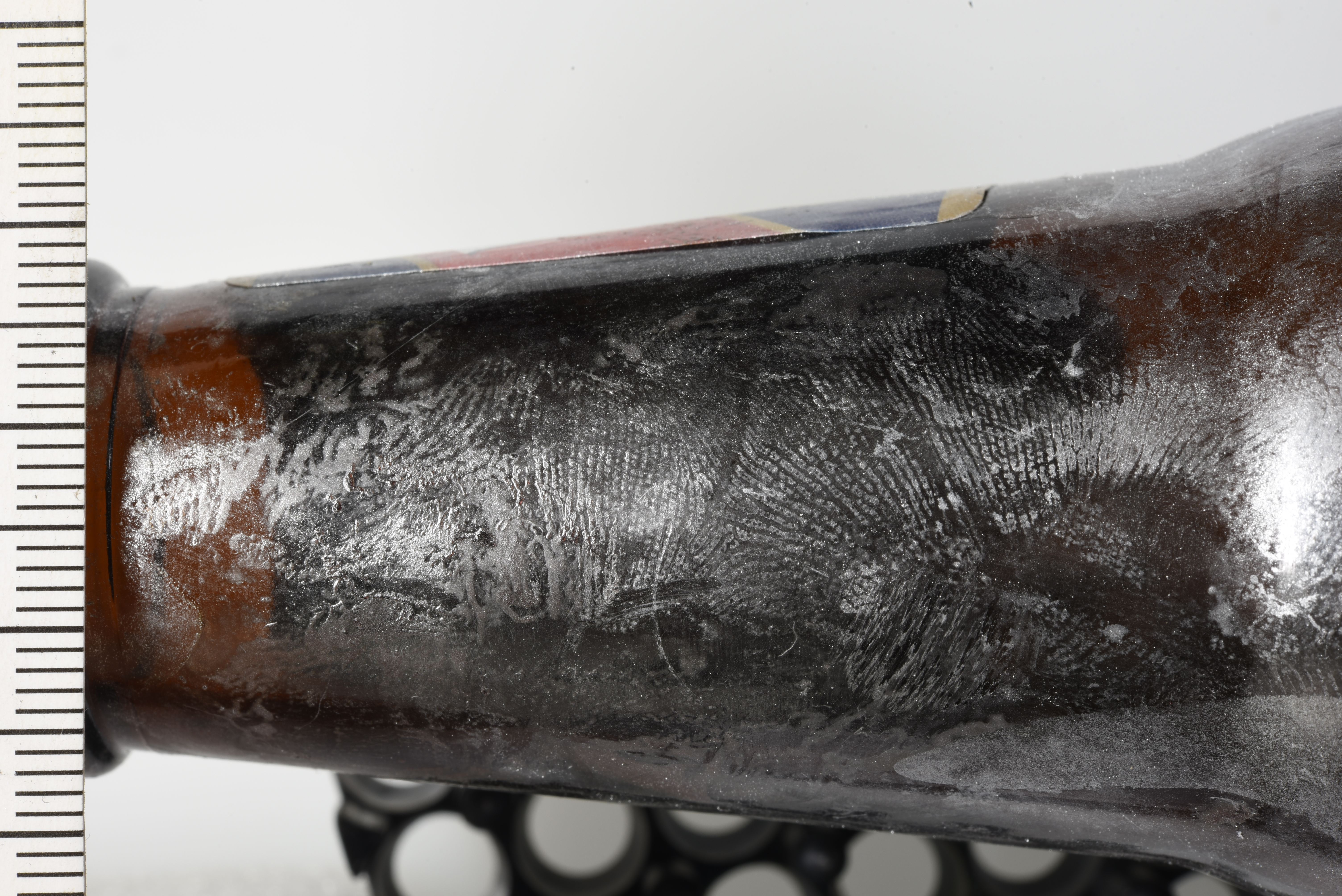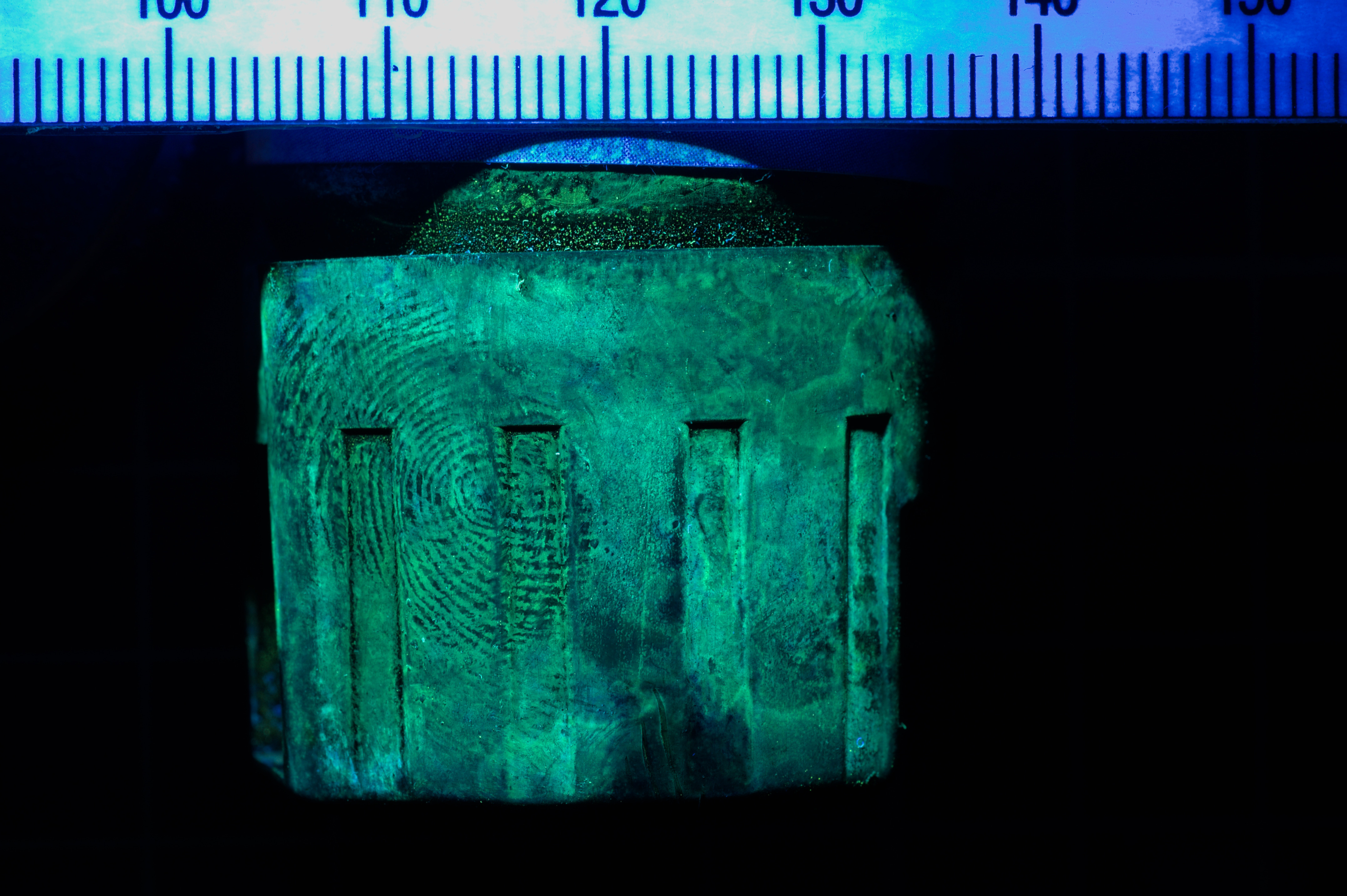 Ujawnianie śladów linii papilarnych na różnych typach podłoża np.: papier, plastik, szkło, metal itp.